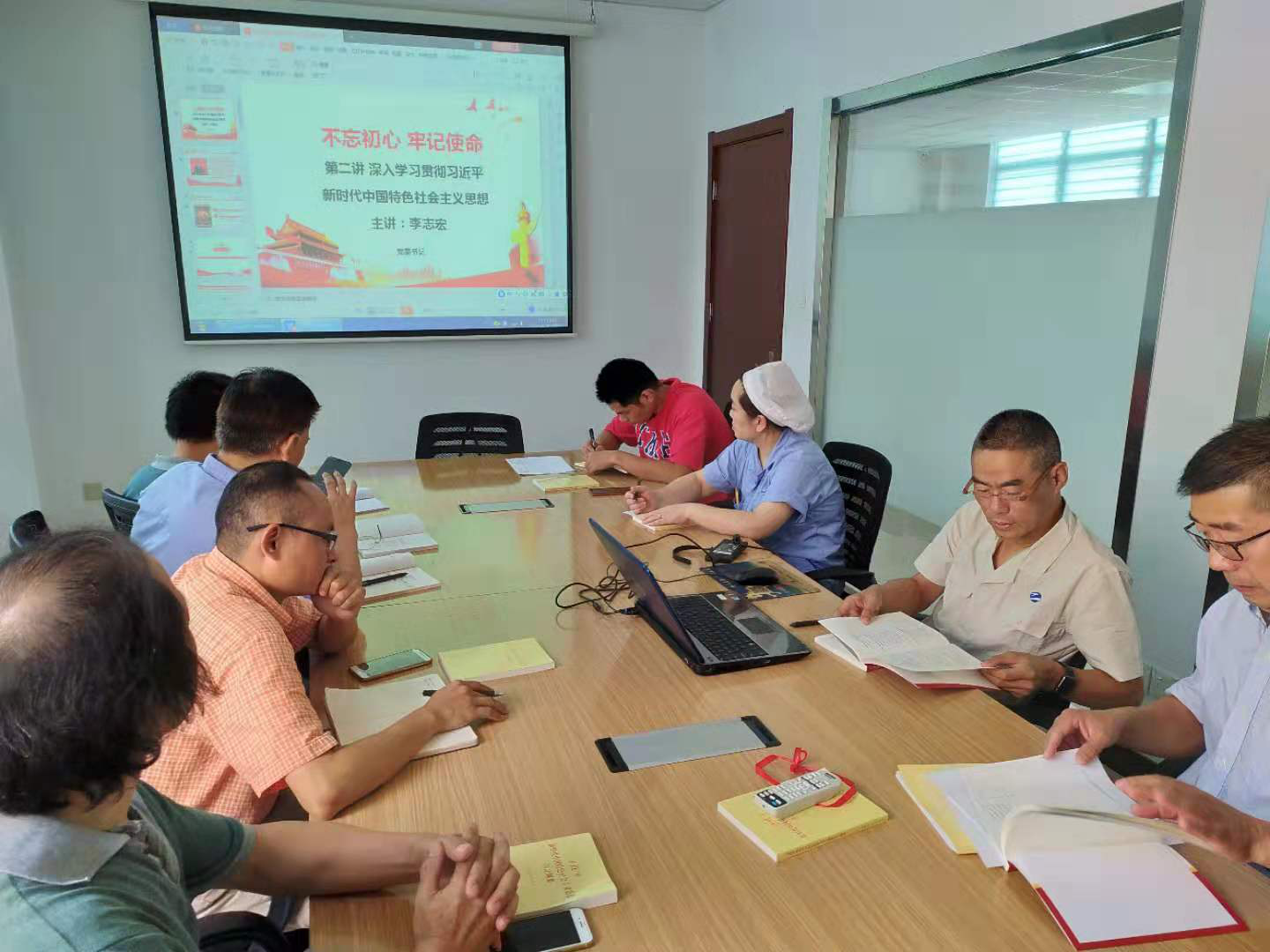 紡織染公司黨委書記李志宏為崇天黨支部上專題黨課