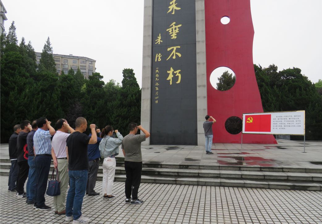 烈士陵園內(nèi),莊嚴(yán)肅靜。由朱德偉人親筆題詞的“革命烈士永垂不朽”紀(jì)念塔屹立在陵園廣場(chǎng),在紀(jì)念塔下,由黨支部副書(shū)記凌德均領(lǐng)讀,全體黨員高舉右手,再次莊嚴(yán)宣誓,重溫入黨誓詞。 在講解員帶領(lǐng)下,全體同志參觀了陵園東、西陳列館,大家認(rèn)真聽(tīng)取了革命先烈事跡故事,觀看了珍貴的歷史照片、烈士遺物。在講解員聲情并茂的講解下,所有同志無(wú)不對(duì)革命先烈們“火燒竹籬笆”、“寧可站著死,也不跪著生”的大無(wú)畏氣概以及無(wú)私奉獻(xiàn)的精神所感染。
