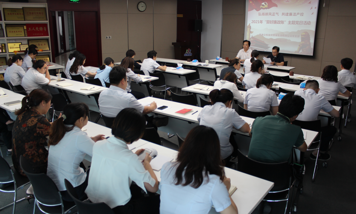 近日,眾和擔(dān)保黨支部組織開(kāi)展“算好廉政賬”主題黨日活動(dòng),全體黨員、入黨積極分子、公司領(lǐng)導(dǎo)班子成員、中層以上干部及子公司領(lǐng)導(dǎo)班子成員參加,活動(dòng)由黨支部書(shū)記何葉主持。