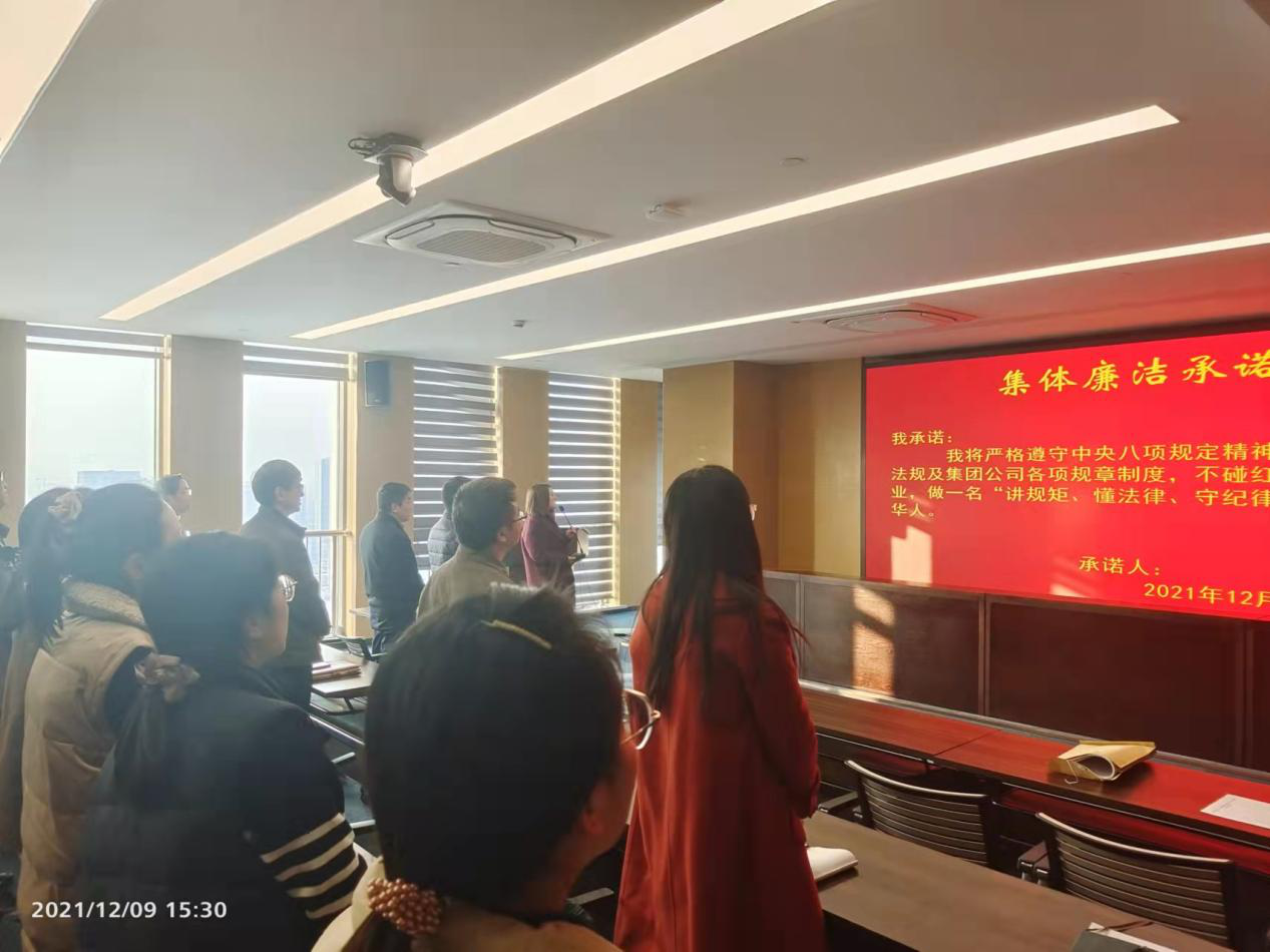 “我承諾:我將嚴格遵守中央八項規(guī)定精神,國家法律法規(guī)及集團公司各項規(guī)章制度,不碰紅線,廉潔從業(yè),做一名“講規(guī)矩、懂法律、守紀律”的合格精華人?!币痪渚溴P錚諾言,鏗鏘豪邁,在精華制藥集團股份有限公司大會議室內(nèi)響徹天地!原來這是精華制藥集團黨委副書記、紀委書記、工會主席曹燕紅在領(lǐng)著大家一起開展集體廉潔承諾活動。