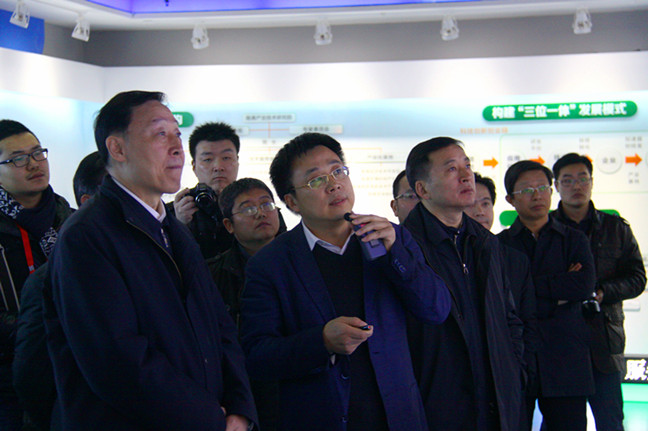 羅志軍一行在南通產(chǎn)業(yè)技術(shù)研究院展示中心認(rèn)真聽取了產(chǎn)研院總經(jīng)理沈風(fēng)雷關(guān)于研究院在構(gòu)建研究機(jī)構(gòu)、科技園區(qū)、產(chǎn)業(yè)基地三位一體運(yùn)作模式等方面的情況介紹,詳細(xì)了解了產(chǎn)研院在智慧建筑、智能裝備、新材料、互聯(lián)網(wǎng)經(jīng)濟(jì)等領(lǐng)域的最新科研成果。在希盟智能健康監(jiān)護(hù)系統(tǒng)模型展示前,羅志軍與企業(yè)負(fù)責(zé)人認(rèn)真交流,仔細(xì)詢問最新研究成果和產(chǎn)業(yè)化進(jìn)展。在觀看了眾誠生物納米修復(fù)材料現(xiàn)場(chǎng)演示后,羅志軍高興地說,這樣的科技創(chuàng)新不僅能夠有效解決企業(yè)發(fā)展中遇到的技術(shù)難題,而且在環(huán)境保護(hù)方面取得了關(guān)鍵突破。